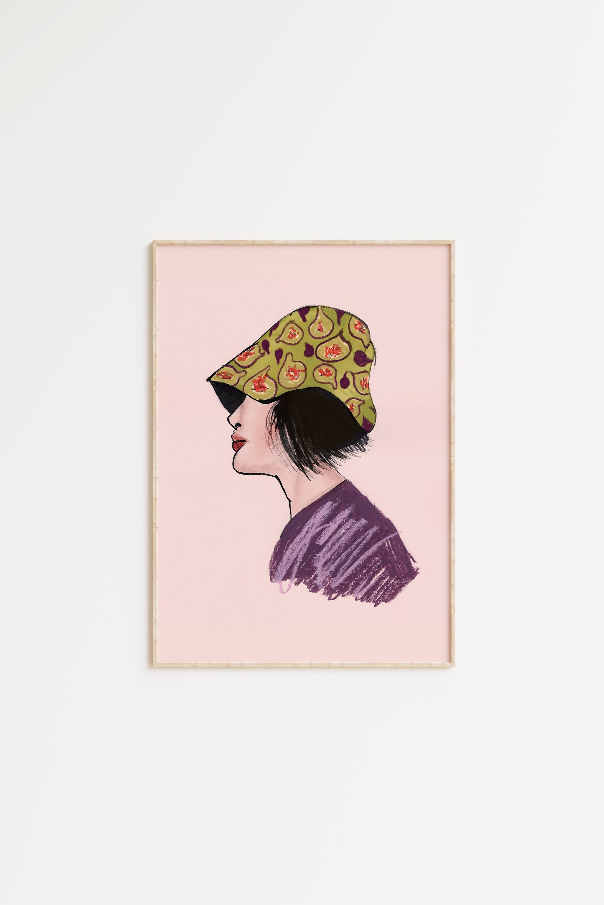 This print has been illustrated by Maja from Majukooo using: ink applied with a wooden spoon, poster paint and wax pastels. Maja was inspired by bright statement colours in fashion and autumnal fig season.